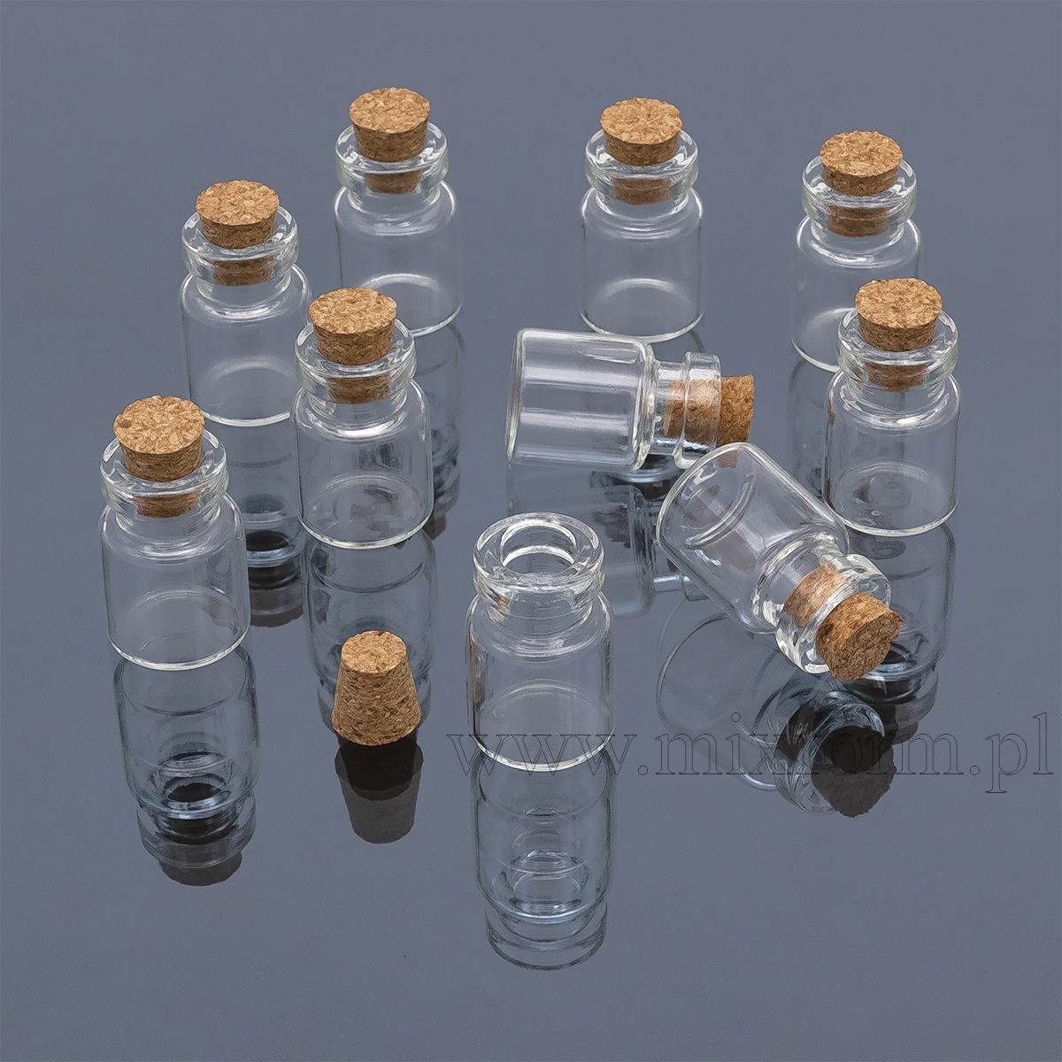 Szklana Butelka na Koraliki, z Korkiem, Butelka Życzeń, 245x20x95mm, 5szt (13WB32104)