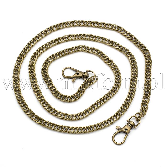 Łańcuszek do Torebki, Żelazny, z Obrotowym Zapięciem, Jasny Złoty, Długość 119cm, Ogniwo 10x7x1.8mm, 1szt