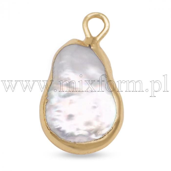 Wisiorek Zawieszka Naturalne Perły Rzeczne, Samorodek Keshi, Okucia Mosiądz i Stop, Złoto, 8~16mm, 2szt
