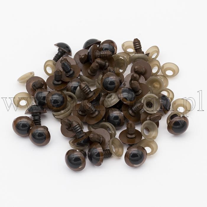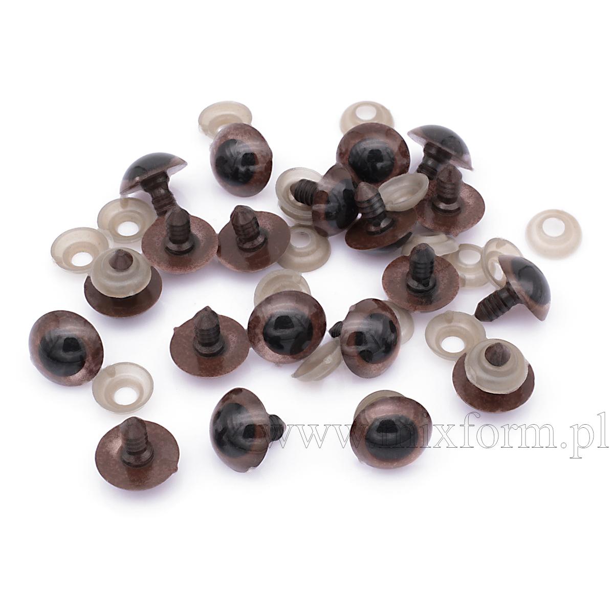 Oczka Bezpieczne z Zaciskami, do Zabawek, Plastikowe, Brązowy, 10mm, 10 szt (14WB6282)