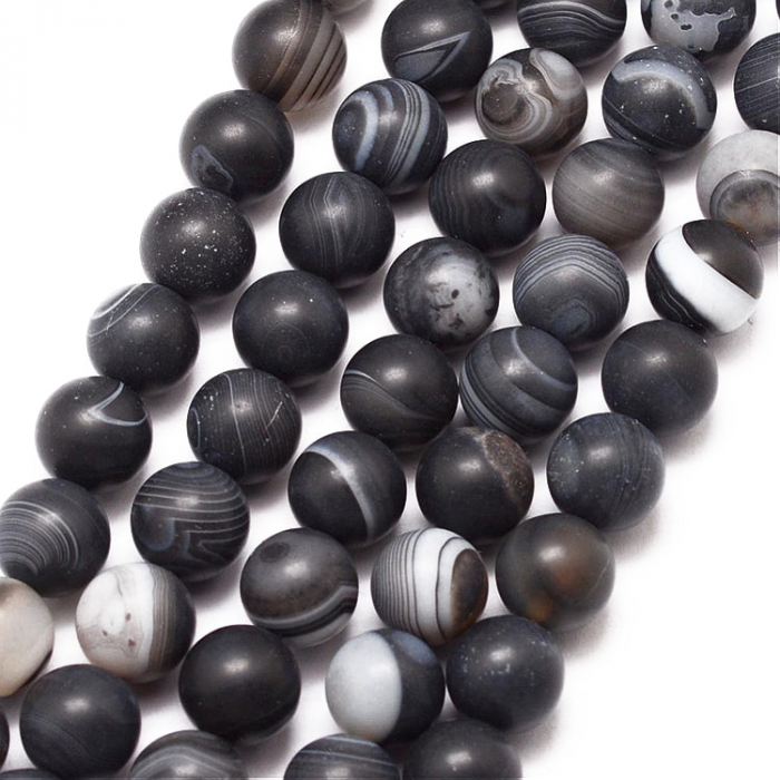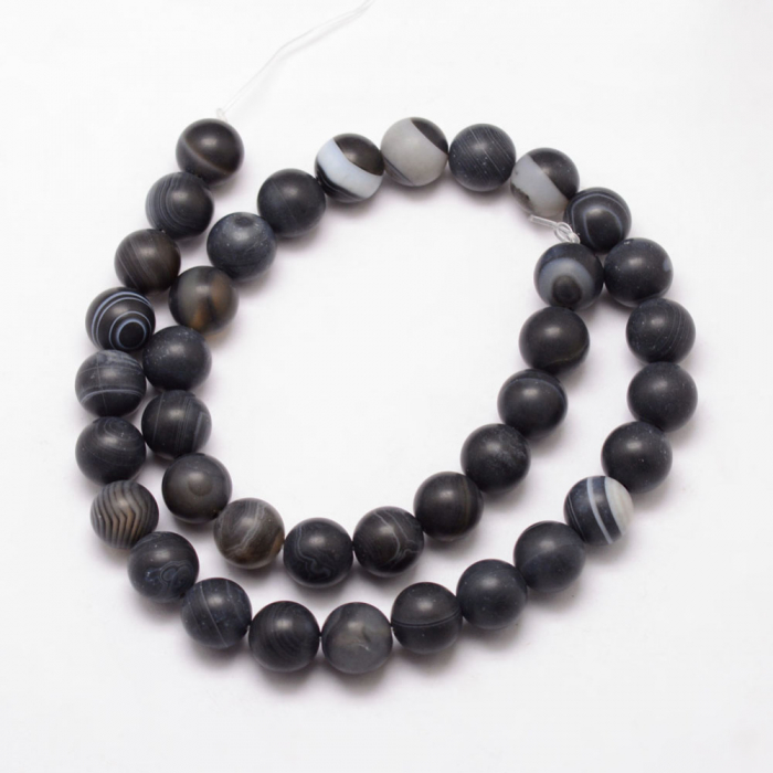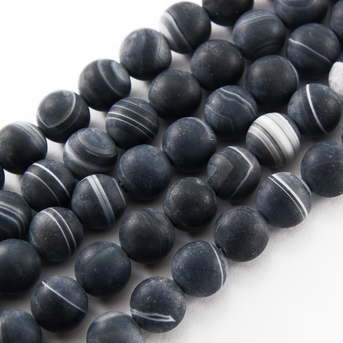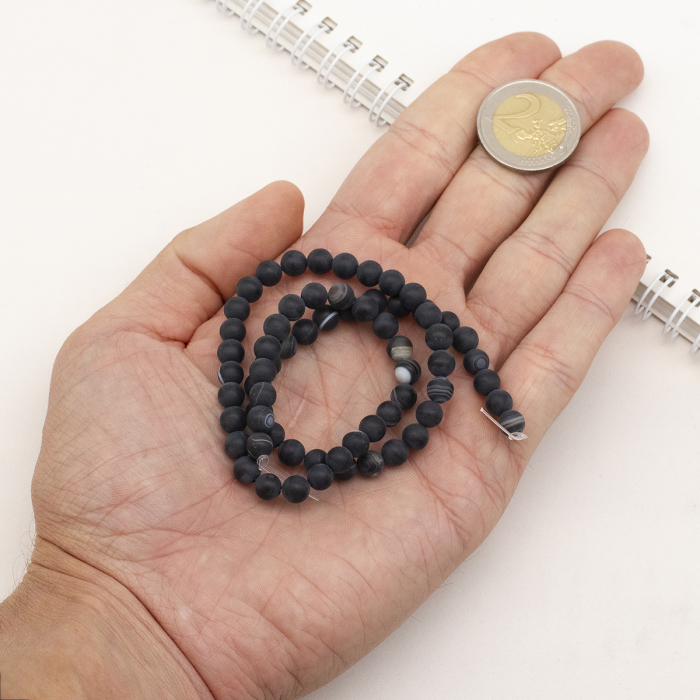 Koraliki Naturalny Agat Paskowany, Okrągłe, Klasa A, Mroźne, Termobarwione, Kolor: Czarny, Kraj pochodzenia kamienia to Brazylia. Rozmiar: Średnica: 6mm, otwór 1mm około 58szt / 36cm / nić Agat ma właściwości energetyczne, które promują stabilność, równowagę i przejrzystość we wszystkich dziedzinach życia. Jego zdolność do równoważenia energii pomaga poprawić ogólne samopoczucie fizyczne i emocjonalne. Jest często używany w medytacji i praktykach duchowych, aby uspokoić umysł i osiągnąć wewnętrzny spokój. Agat jest również związany ze zwiększoną odwagą, lepszą percepcją i koncentracją oraz ochroną przed niebezpieczeństwem. Te agatowe koraliki mogą być używane do tworzenia różnorodnej biżuterii, w tym bransoletek, kolczyków, wisiorków, amuletów i różańców, dodając niepowtarzalnego i pięknego stylu. Termobarwienie kamieni - to procedura, podczas której ogrzewanie zmienia kolor naturalnych kamieni w celu uzyskania bardziej intensywnego i pożądanego efektu kolorystycznego, co sprawia, że stają się one bardziej atrakcyjne i poprawia ich wygląd
