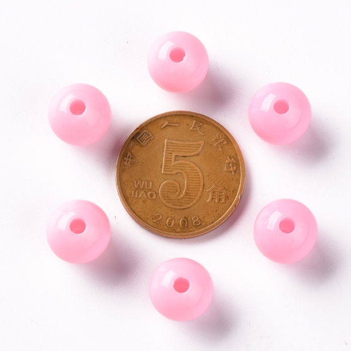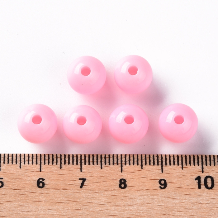 Koraliki Akrylowe, Okrągłe, Nieprzejrzyste, do Rękodzieła, 10x9mm, Perłowy Róż, Otwór: 2mm, około 90szt/50g (13WB29556)