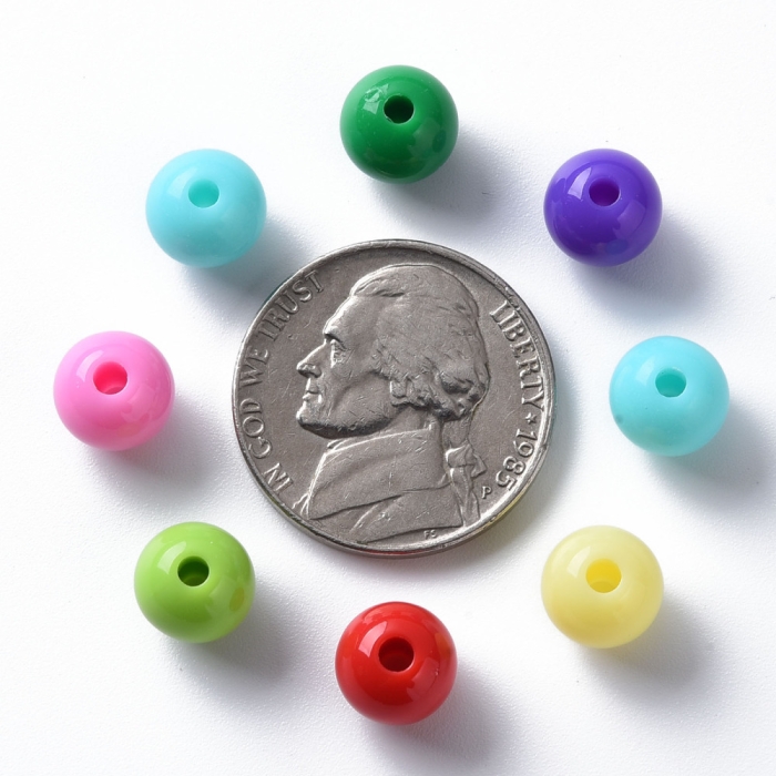 Koraliki Akrylowe Nieprzejrzyste, Okrągłe, Kolor: Mix, 8x7mm, Otwór: 2mm, około 160szt/50g (13WB29583)