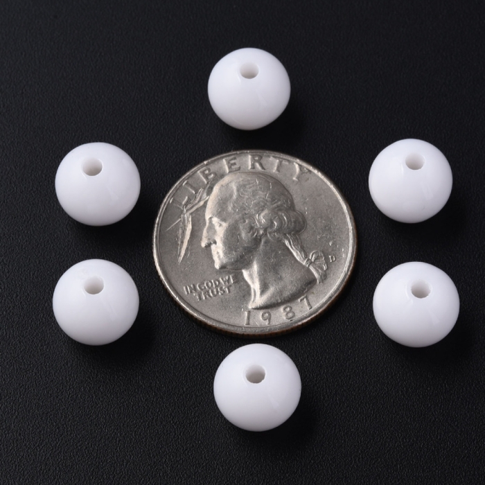 Koraliki Akrylowe Okrągłe Nieprzejrzyste, do Rękodzieła, 10x9mm, Biały, Otwór: 2mm, 90szt/50g (13WB29585)