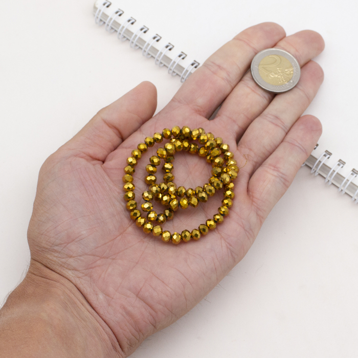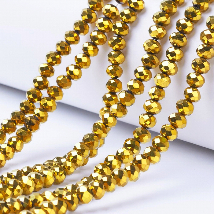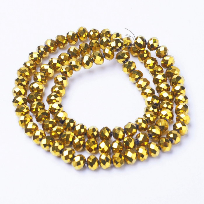 Koraliki Szklo Galwanizacja, Pełna Powłoka, Fasetowane Rondel, Złoty, 6x5mm, ok. 80szt/40cm/nic (13WB29662)