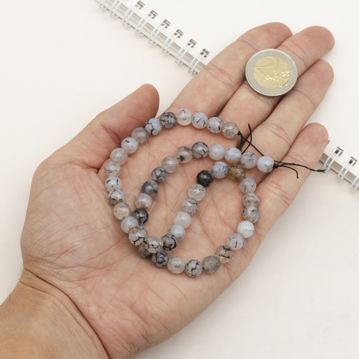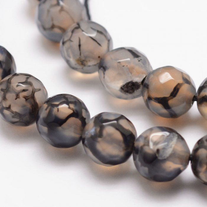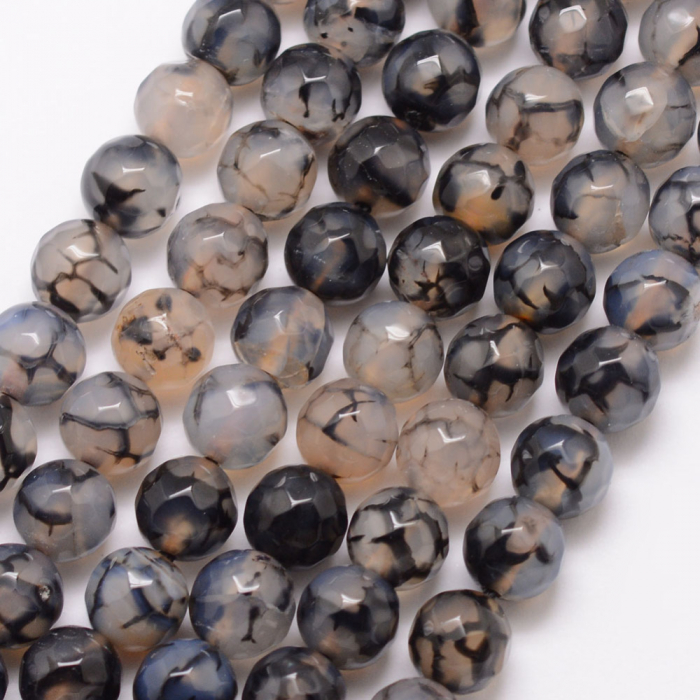 Koraliki Naturalny Agat Smocza Żyła, Klasa A, Fasetowany, Termobarwione, Okrągły, Kolor: Czarny, Kraj pochodzenia kamienia to Brazylia.