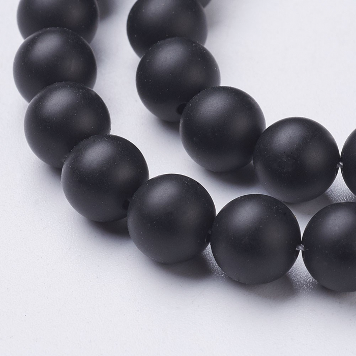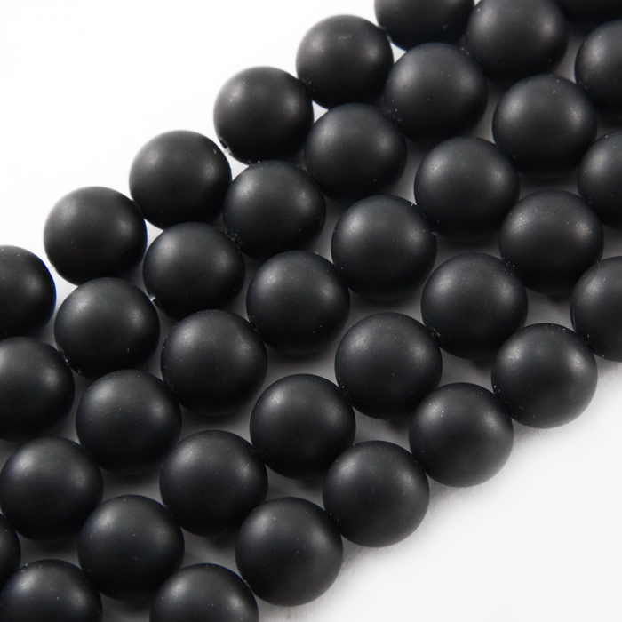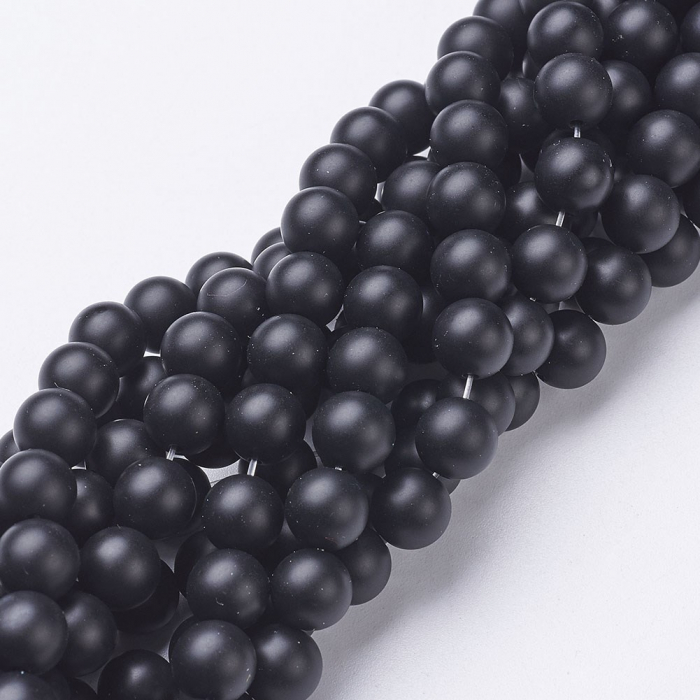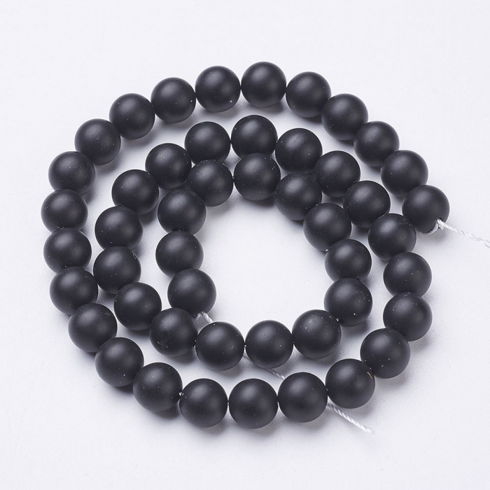 Koraliki Naturalny Czarny Agat, Klasa A, Matowe, Okrągłe, 8mm, około 46szt/37.5cm/sznur (13WB11850)