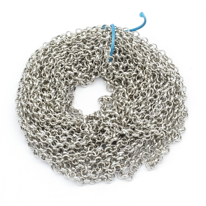 Łańcuszek Żelazny Rolo, Okrągłe Ogniwo, Niespawany, Platyna, 4x1mm, 5m (13WB29012)