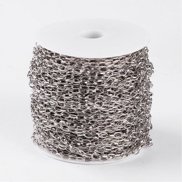 Łańcuch Splot Kotwiczny, Żelazo, Niespawane, Platyna, 6.9x3.8x0.9mm, 5m (13WB29219)