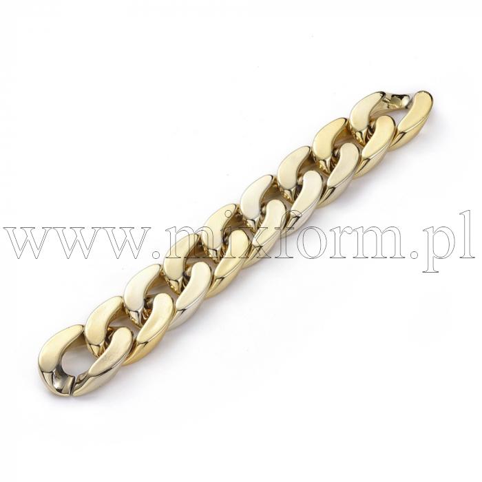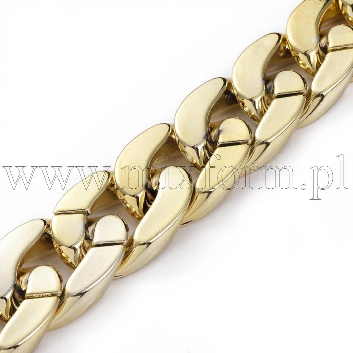 Plastikowy łańcuszek jubilerski to rodzaj łańcuszka wykonanego z materiału akrylowego. Plastikowy łańcuszek pokryty CCB (Copper Coated Beads) z owalnymi ogniwami w splocie kotwicy to lekki i stylowy materiał, idealny do tworzenia modowych dodatków. Wykonany jest z wysokiej jakości tworzywa sztucznego, pokrytego specjalną warstwą, która nadaje produktowi metaliczny połysk i poprawia jego odporność na zużycie. Splot kotwiczny z owalnymi ogniwami sprawia, że łańcuszek jest wszechstronny i atrakcyjny, idealny do stosowania samodzielnie lub w połączeniu z innymi elementami dekoracyjnymi.