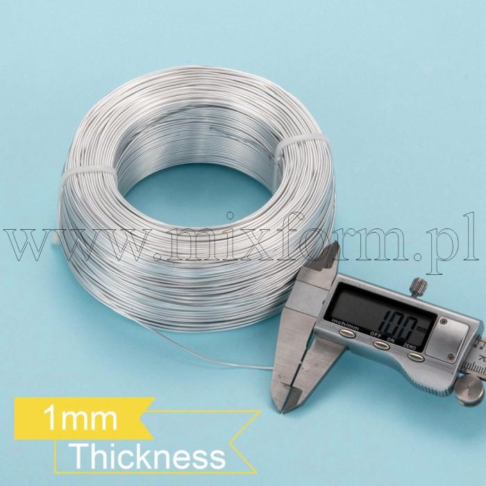 Drut Aluminiowy, Okrągły, do Tworzenia Biżuterii, do DIY, Srebrny, 1mm, 200m/szpula (13WB29604)Opakowanie: