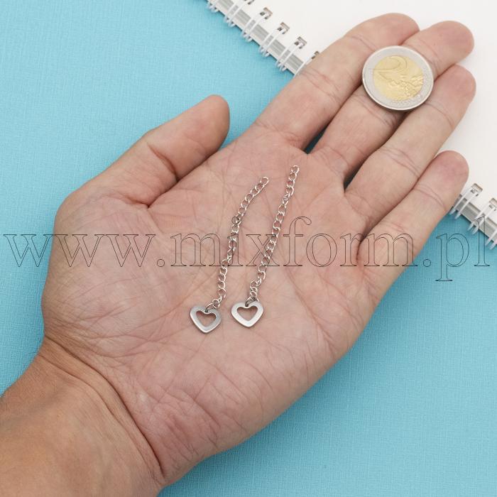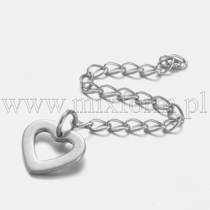 Łańcuszek Przedłużający z Zawieszką Serce, Stal Nierdzewna, 60mm, Zawieszka 10x11x1mm, 5szt (13WB29403)Kolor: