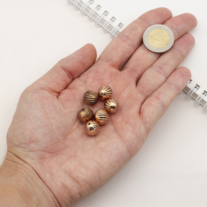 Koraliki Plastic CCB, Okrągłe, Karbowane, Kolor: Miedziany, Rozmiar: 12mm, Otwór 2mm, 20szt (13WB30366)