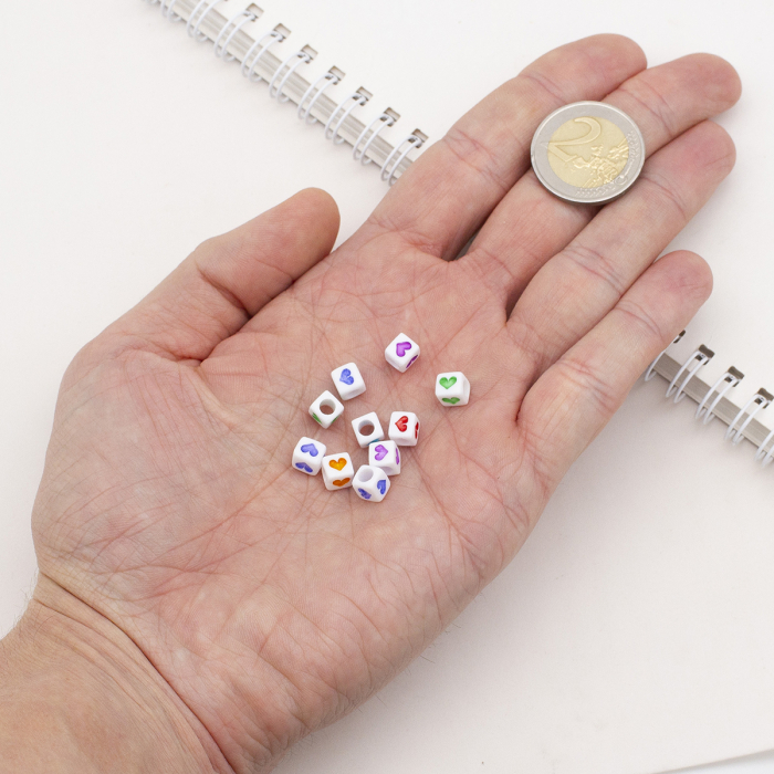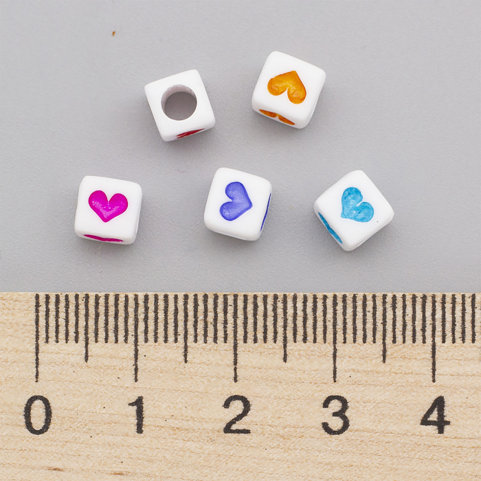 Koraliki Akrylowe Nieprzezroczyste Kostki, Serca
