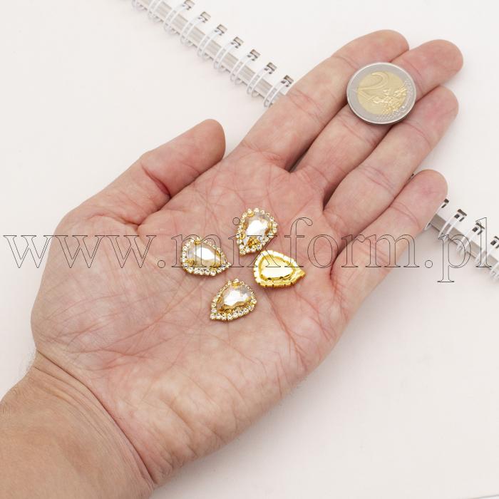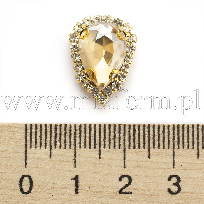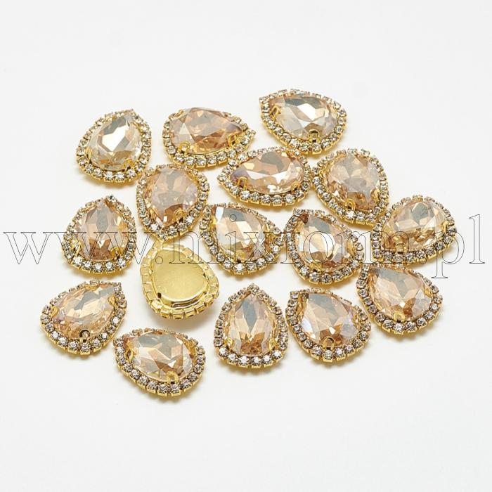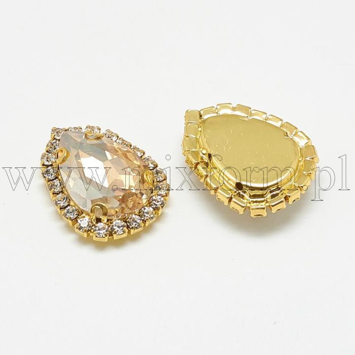 Dżety do Przyszycia w Koszyczku, Szkło i Mosiądz, Kropla, Żółty, 19x14.5x7mm, otwor 1mm, 4szt (13WB29877)Kolor: