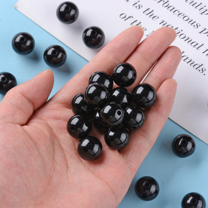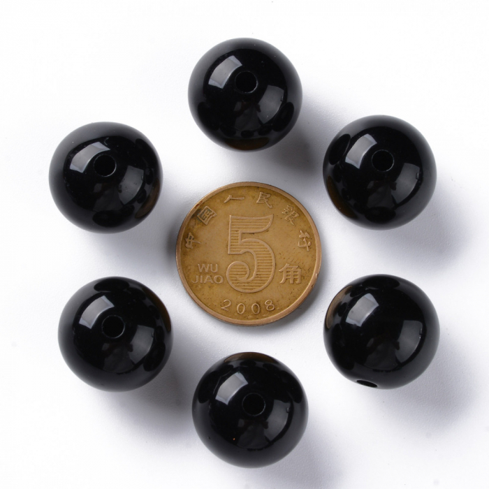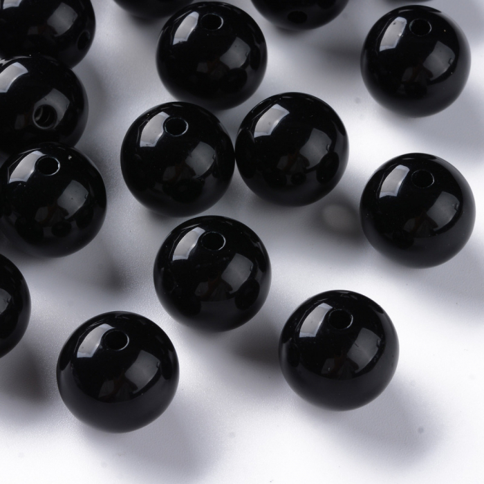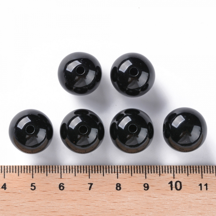 Koraliki Akrylowe Okrągłe Kulki, Czarny, 16x15mm, Otwór 2.8mm, 20szt (13WB31505)