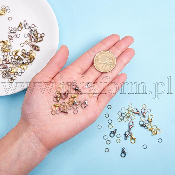 Zestaw Zapięcie Karabińczyki, 6 kolorów, 12mm/132szt i Kółeczka Ogniwka 5mm, 840szt (13WB31481)Kolor: