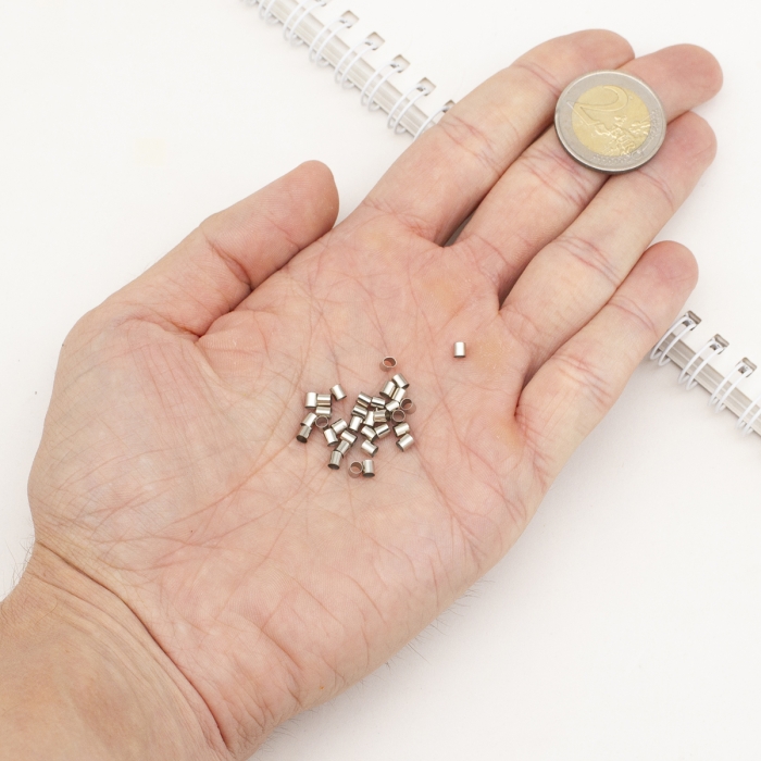 Stopery to niewielkie koraliki służące do montażu biżuterii na żyłce lub lince. Stopery o cienkich ściankach i szerokim otworze są łatwe do ściśnięcia podczas montażu, umożliwiając mocowanie ozdobnych koralików w pożądanym miejscu. Ponadto, zaciski mogą być wykorzystywane do tworzenia zasłon z koralików, mocowania pętli podczas tworzenia zapięcia i innych celów dekoracyjnych. Stopery są ważnym elementem biżuterii, to dzięki nim można sprawić, że biżuteria będzie bardziej atrakcyjna i wyższej jakości. Wykonane z mosiądzu, nie powodują alergii.