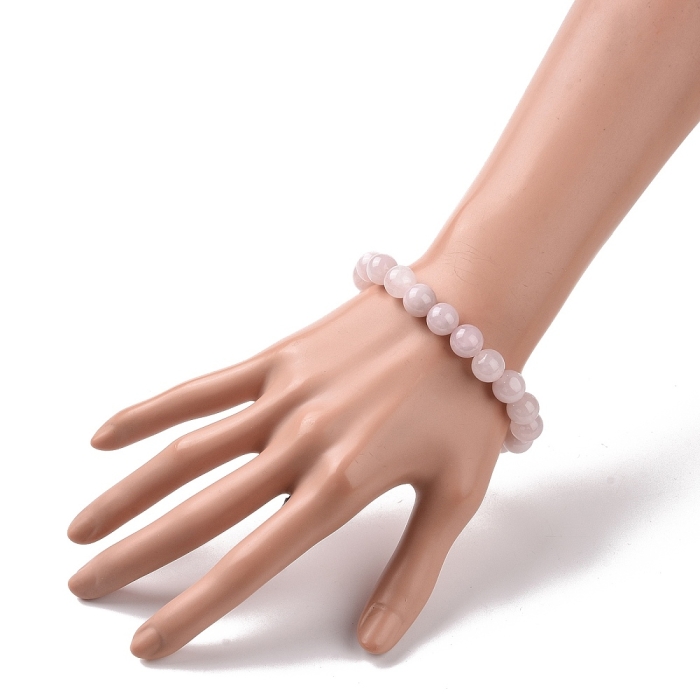 Bransoletka z naturalnych koralików kwarcu różowego to stylowa i wyrafinowana biżuteria wykonana z kamienia półszlachetnego o delikatnym różowym odcieniu. Koraliki mają okrągły kształt, co nadaje bransoletce klasyczny i wyrafinowany wygląd. Ma elastyczną podstawę, która zapewnia wygodę noszenia i pasuje do różnych rozmiarów nadgarstków. Kwarc różowy, nazywany „kamieniem miłości”, symbolizuje harmonię, delikatność i równowagę emocjonalną.