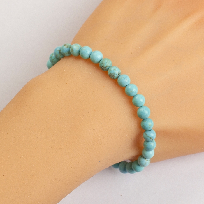 Delikatna bransoletka wykonana z naturalnego howlitu, charakteryzującego się subtelną białą barwą z naturalnymi szarymi żyłkami. Mniejsze koraliki tworzą elegancką i dyskretną formę, idealną dla osób ceniących minimalistyczną biżuterię.