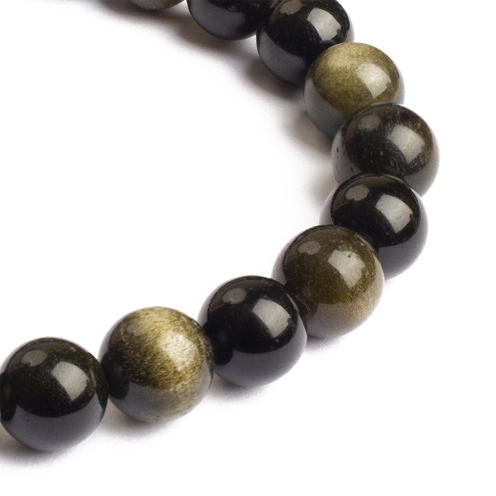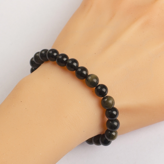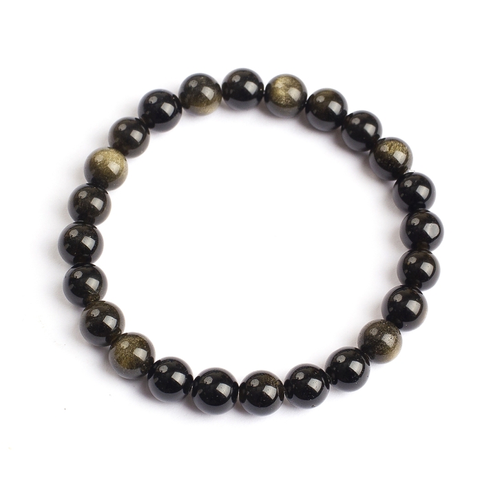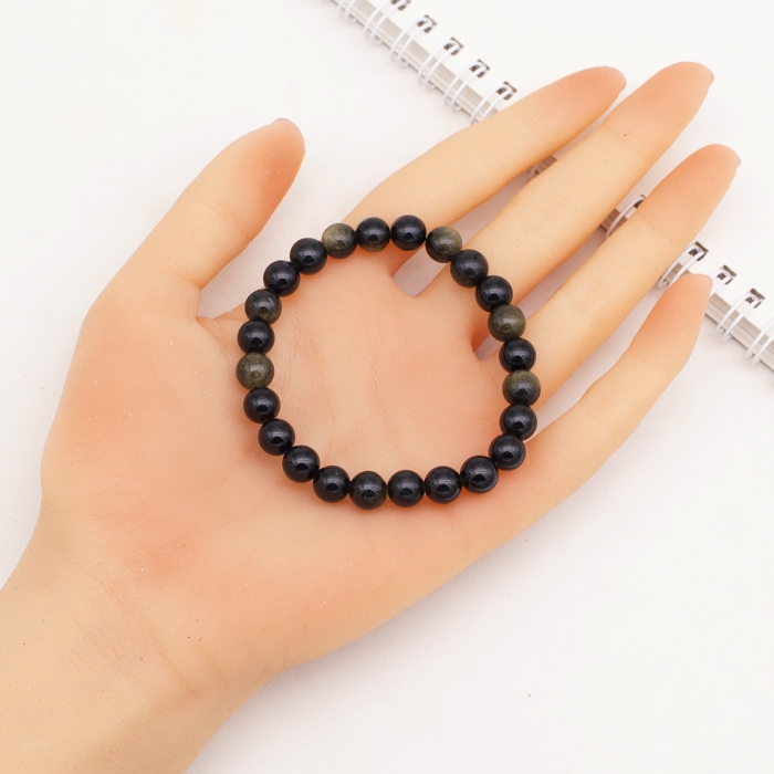 Bransoletka z Naturalnego Złocistego Obsidianu, Elastyczna, Koralik 8mm, 1szt (13WB32026)