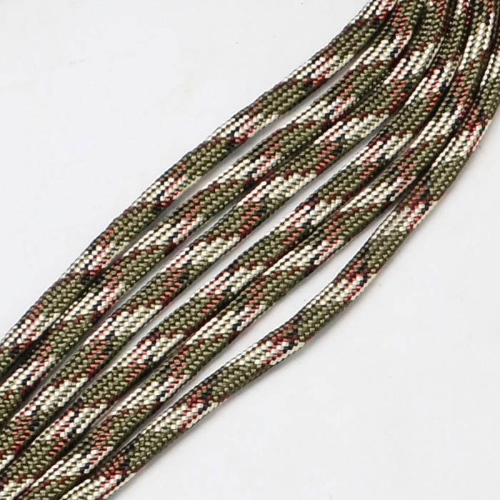 Elastyczny i odporny na warunki zewnętrzne sznurek typu paracord, wykonany z trwałej mieszanki poliestru i spandexu. Konstrukcja z 7 wewnętrznymi żyłami zapewnia wysoką wytrzymałość przy zachowaniu giętkości, co czyni go idealnym narzędziem w wielu sytuacjach – zarówno praktycznych, jak i dekoracyjnych.