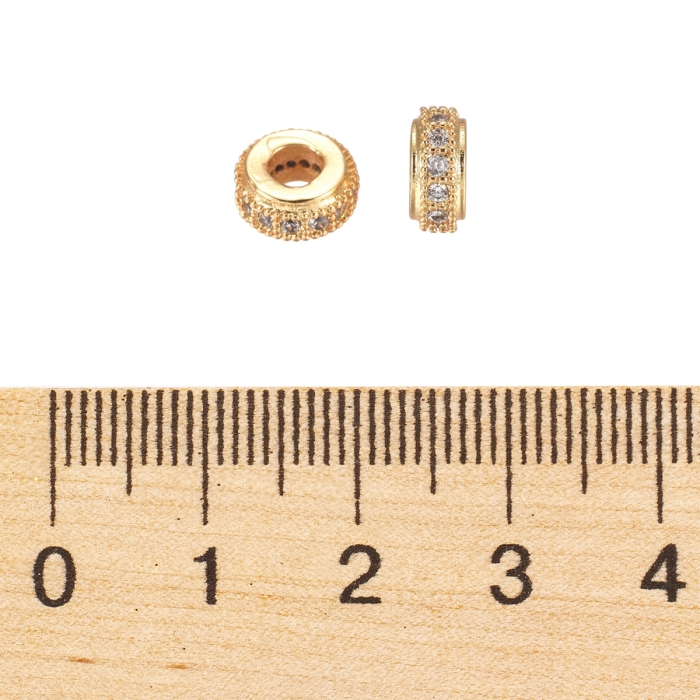 Mosiężne Koraliki z Cyrkoniami, Rondel,
