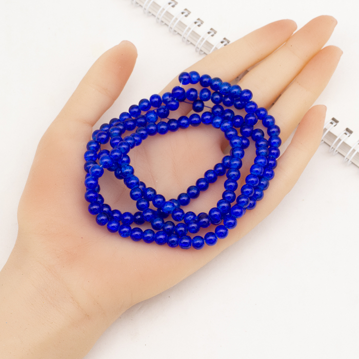 Koraliki Szklane Crackle, Okrągłe "Szkło Tłuczone", Niebieskie, 6mm, Otwór 1mm, około 130szt/76cm/nić (3WB5817)