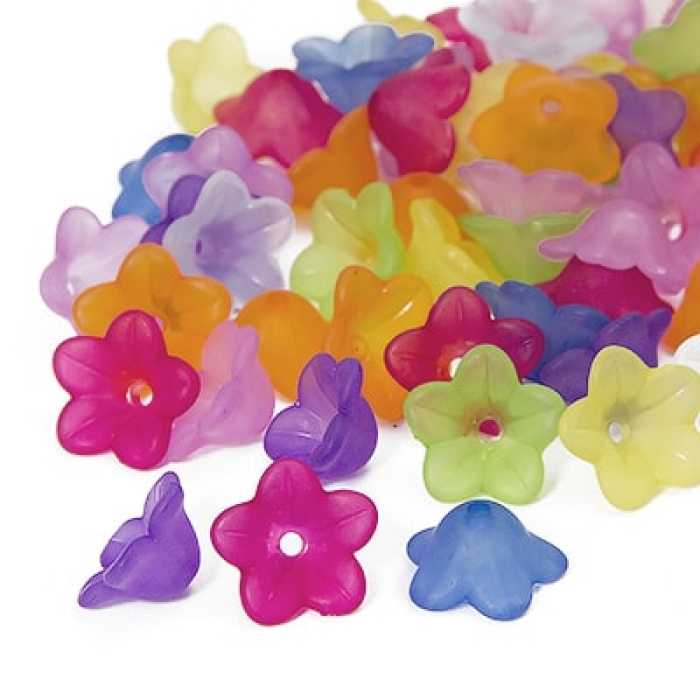 Koraliki Akrylowe, Przezroczyste, Matowy, Kwiat, Kolor: Mieszane, 13x7mm, Otwór: 1mm, około 90szt/25g (2WB30156)