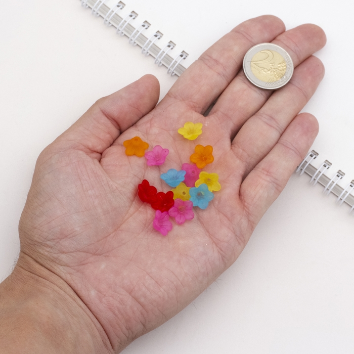Te akrylowe koraliki kwiatowe o matowym wykończeniu mają przyjemną teksturę. Nie można ich złamać i są nieważkie. Zapewniają doskonałą jakość biżuterii lub ubrań, a kształt kwiatu jest dodatkową zaletą. Mogą być używane do ozdabiania różnych elementów. Możesz z nich stworzyć wspaniałe kolczyki lub zestawy biżuterii, autorski naszyjnik lub zrealizować swoje najśmielsze pomysły.