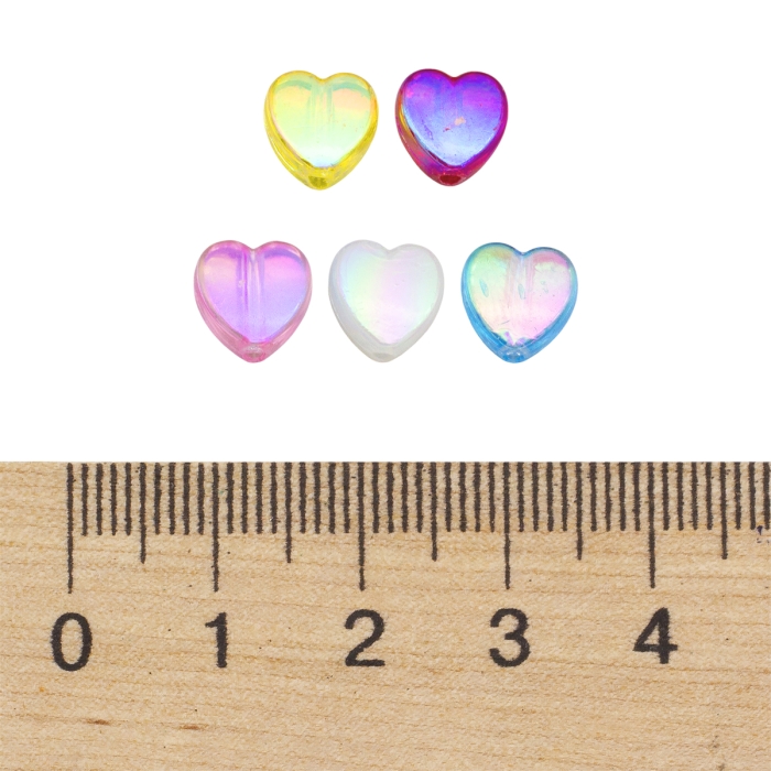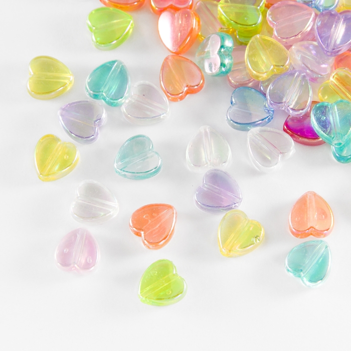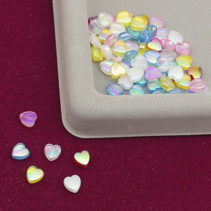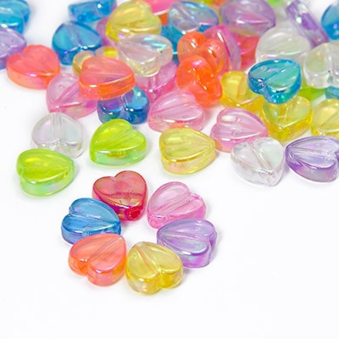 Koraliki Akrylowe, Przezroczyste, Serce, Tęczowy, Mix, 8x8x3mm, około 130szt/25g (2WB30488)Opakowanie: