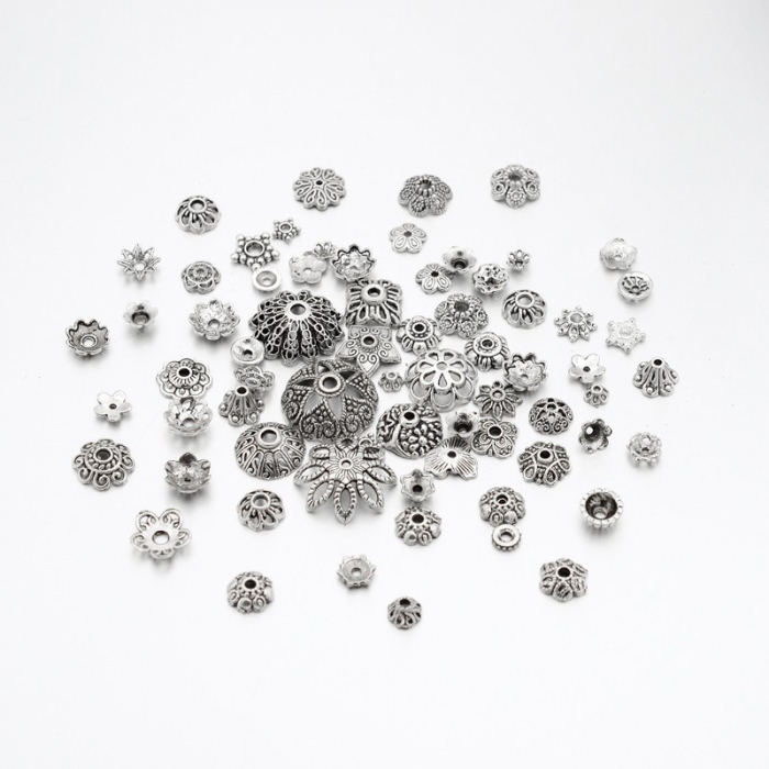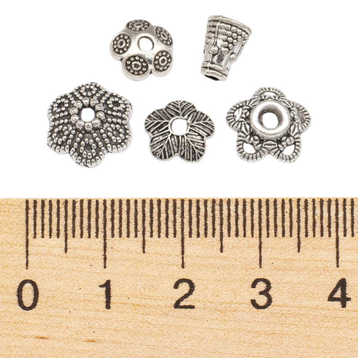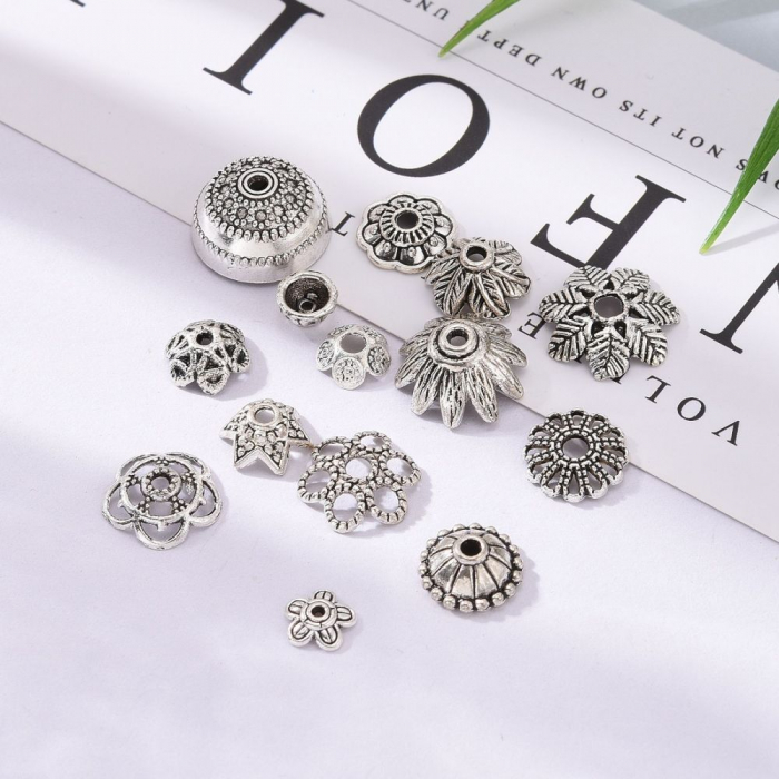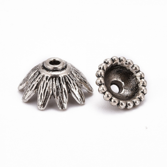 Nakładki stożkowe na koraliki wykonane ze stopu metali to eleganckie elementy dekoracyjne, które nadają biżuterii wykończony i estetyczny wygląd. Pomagają ukryć otwory koralików, tworząc płynne przejścia między elementami kompozycji. Dzięki solidnemu wykonaniu i stylowemu wzornictwu, nakładki są trwałe i odporne na zużycie.