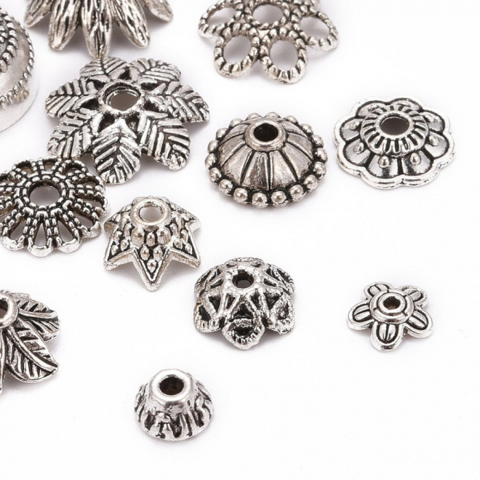 Stożek Nakładki na Koraliki, Tybetański Styl, Styl Mieszany, Stop, Antyczne Srebro, 5~30x3~12mm, 38szt/20g (14WB6826)