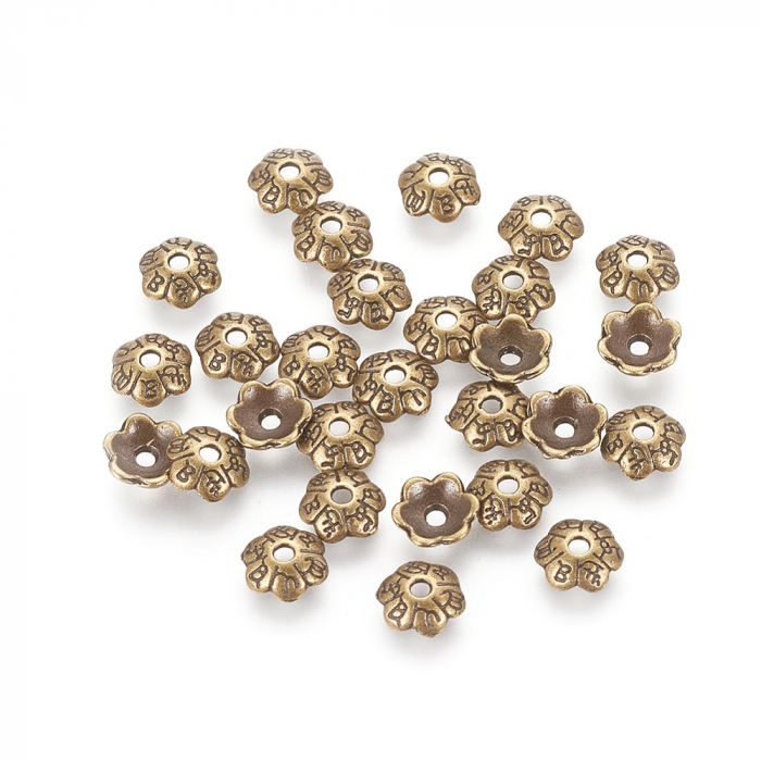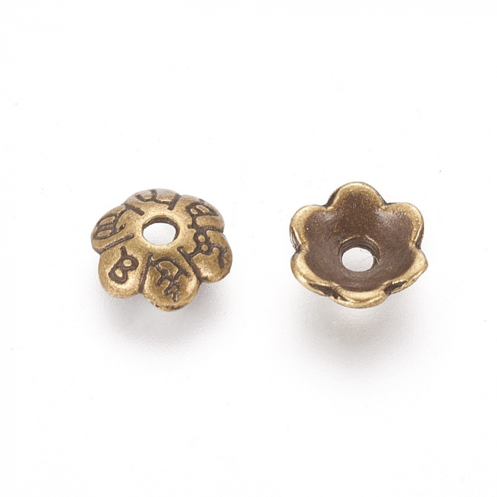Nakładki na Koraliki ze Stopu Metali, Styl Tybetański, Kwiat, Bez Kadmu, Niklu i Ołowiu Kolor: Brązowy