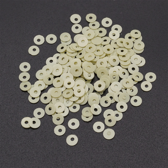 Okrągły płaski cekin wykonany jest z wysokiej jakości wytrzymałego tworzywa sztucznego. Jest używany w wielu technikach rękodzielniczych i kreatywnych, takich jak dekoracja, haft, tworzenie biżuterii, aplikacja itp.