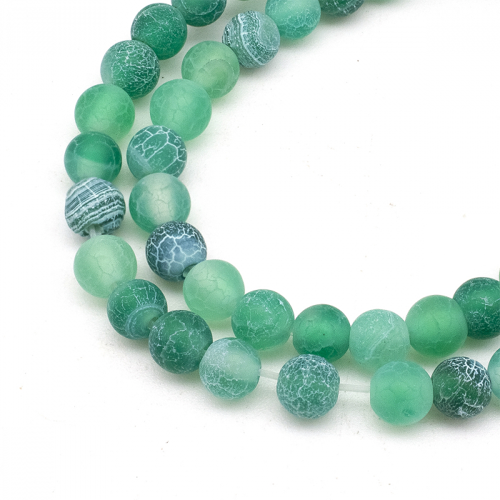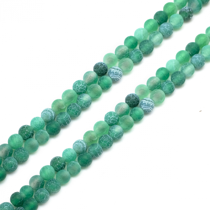 Koraliki Naturalny Agat Crackle, Okrągłe, Na sznurze, Klasa A, Barwione Kraj pochodzenia kamienia: Urugwaj Kolor: Jasnozielony