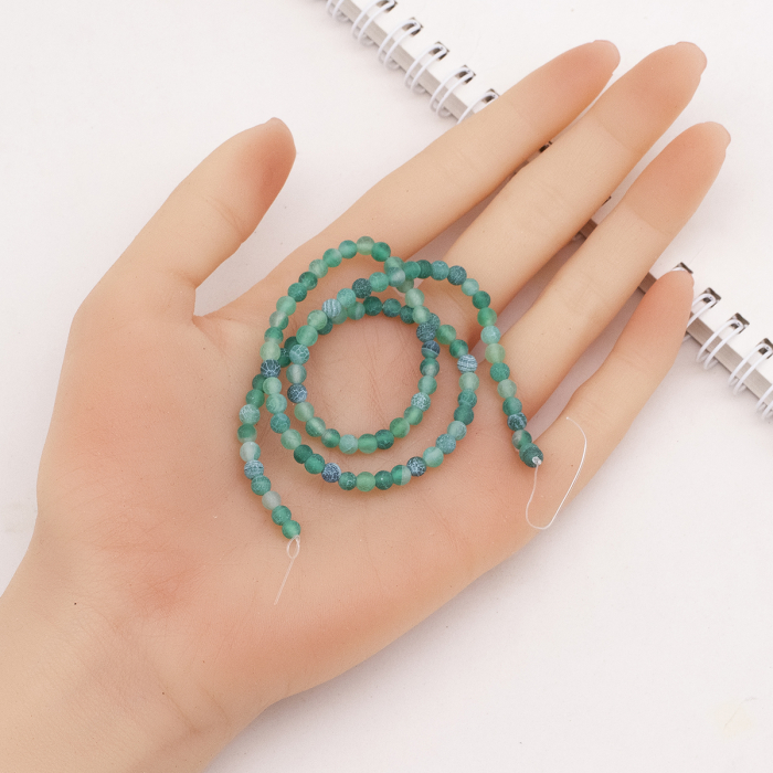 Koraliki Naturalny Agat Crackle, Okrągłe, Klasa A, Jasnozielony, 4mm, 90szt / 38cm / sznur (13WB25126)