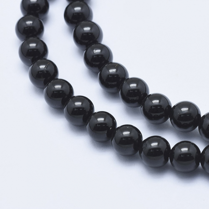 Koraliki Naturalny Czarny Turmalin, Okrągłe, na sznuri, Niebarwione Kraj pochodzenia kamienia: Brazylia