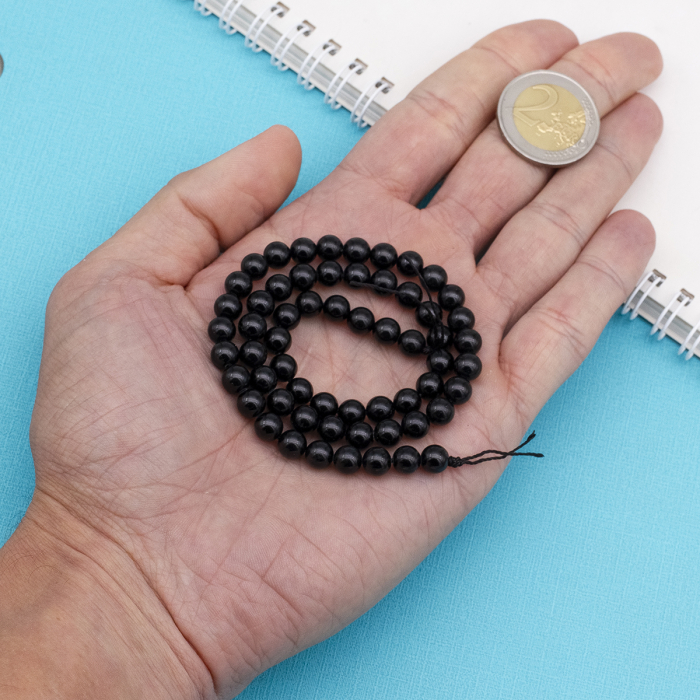 Koraliki z czarnego turmalinu idealnie nadają się do tworzenia bransoletek, naszyjników, kolczyków i amuletów, dodając biżuterii mocy i tajemsznurzości. Świetnie komponują się ze srebrem, złotem i innymi kamieniami naturalnymi, tworząc stylowe dodatki w stylu klasycznym, boho i minimalistycznym. Turmalin, kojarzony z ochroną i uziemieniem, sprawia, że takie koraliki są nie tylko atrakcyjne wizualnie, ale także symboliczne, dodając produktom energię stabilności i pewności.