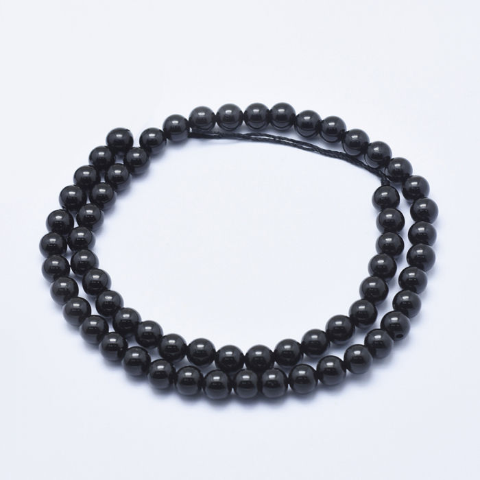 Koraliki Naturalny Czarny Turmalin, Okrągłe, 6mm, około 57szt/38cm/sznur (13WB28798)