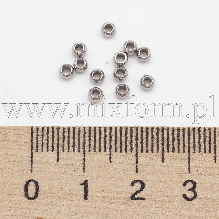 Koraliki Dystansowe, Stal Nierdzewna, Okrągłe, 3x2mm, otwor 1.5mm, 25szt (13WB17408)Opakowanie: