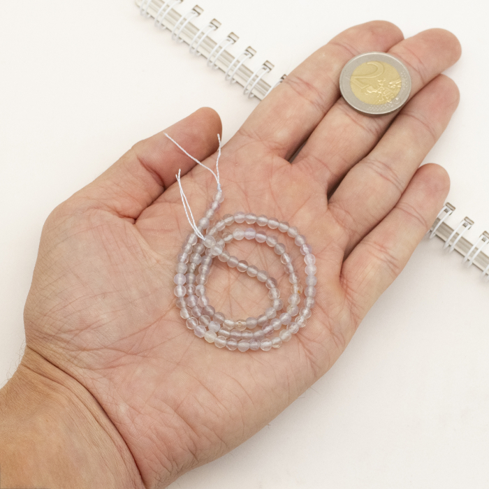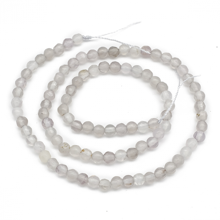 Koraliki Naturalny Agat, Fasetowany, Barwiony, Kolor: Biały Dym, Kraj pochodzenia kamienia to Brazylia Rozmiar: Średnica: 4mm, otwór 1mm, około 95szt / 37cm / nić Właściwości energetyczne agatu: Uważa się, że agat promuje stabilność, równowagę i przejrzystość we wszystkich dziedzinach życia. Jego energetyczne właściwości równoważące pomagają regulować przepływ energii w ciele, promując ogólne zdrowie i dobre samopoczucie. Jest często używany w medytacji i innych praktykach duchowych, ponieważ pomaga uspokoić umysł i promuje wewnętrzny spokój. Uważa się również, że zwiększa odwagę noszącego, poprawia percepcję i koncentrację oraz chroni przed niebezpieczeństwem. W biżuterii koraliki te mogą być używane do tworzenia naszyjników, bransoletek, kolczyków, aby stworzyć unikalną ozdobę, która podkreśli Twój styl. Obraz może wyglądać inaczej (kolor) ze względu na różne odwzorowanie kolorów monitorów.