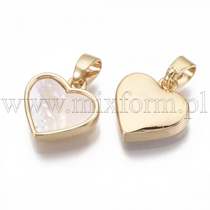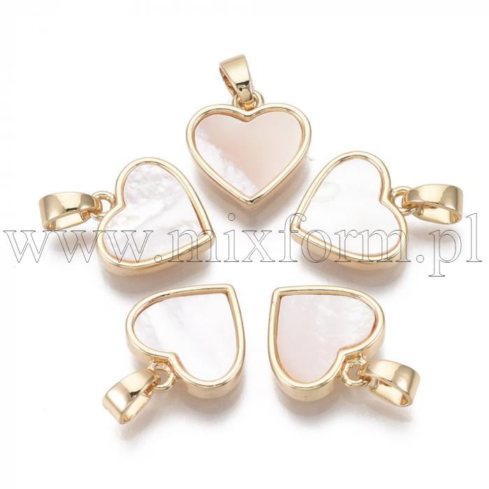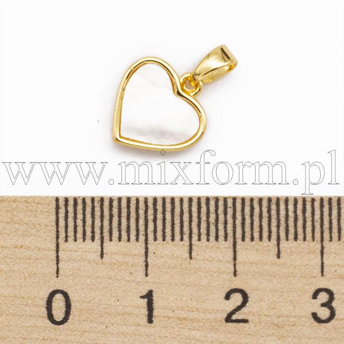 Zawieszki Serce, Perły Rzeczne, Pozłacane 18K, Biały, 12x11.5x3mm, 1szt (13WB26167)Kolor: