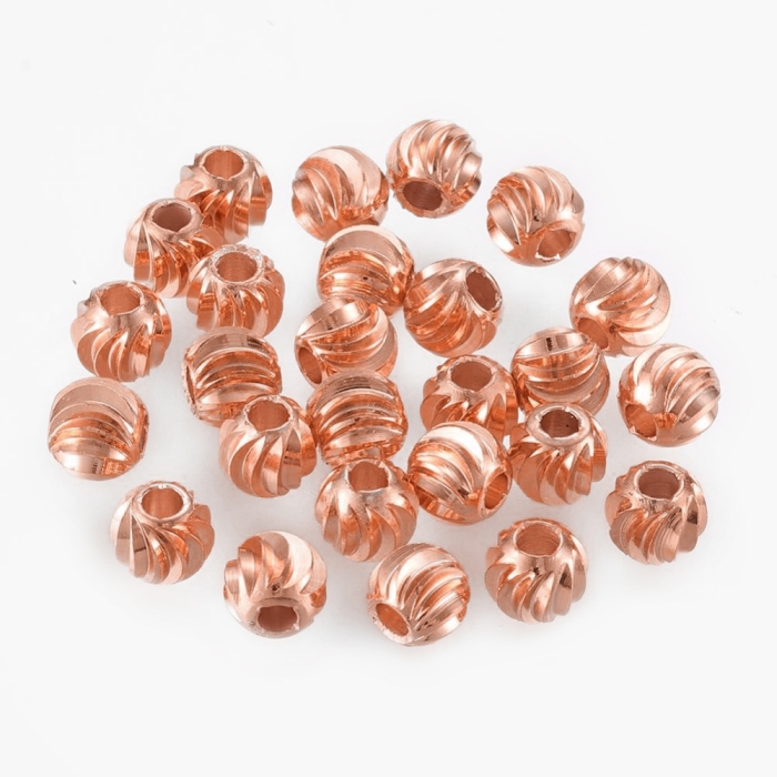 Koraliki Mosiądz, Okrągłe, Ryflowane,