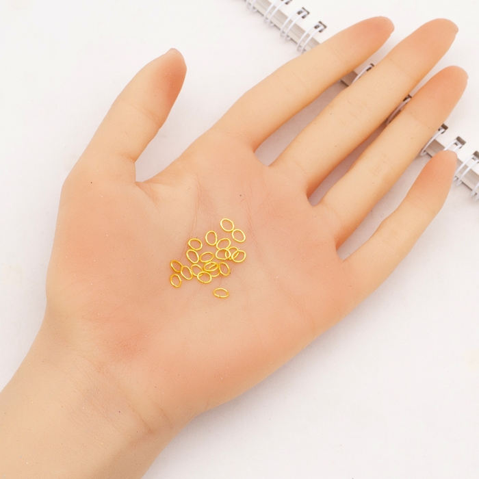 Pojedyncze otwarte żelazne Kółka ze złoceniem są uniwersalnym i stylowym dodatkiem do tworzenia i naprawy biżuterii. Obrączki wykonane są z wytrzymałego żelaza i pokryte złotem, co zapewnia ich trwałość, połysk i odporność na korozję. Owalny kształt pozwala na pewne połączenie elementów, dodając biżuterii estetycznego i wyrafinowanego wyglądu.