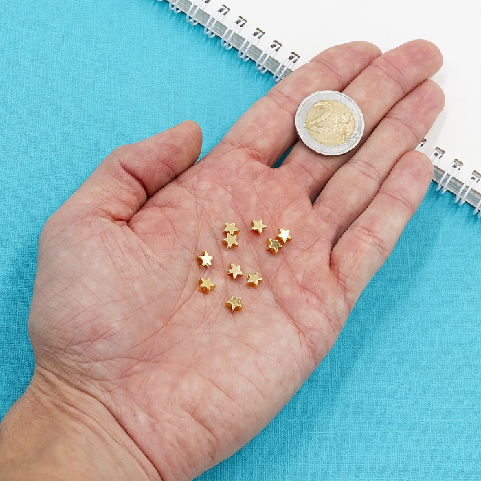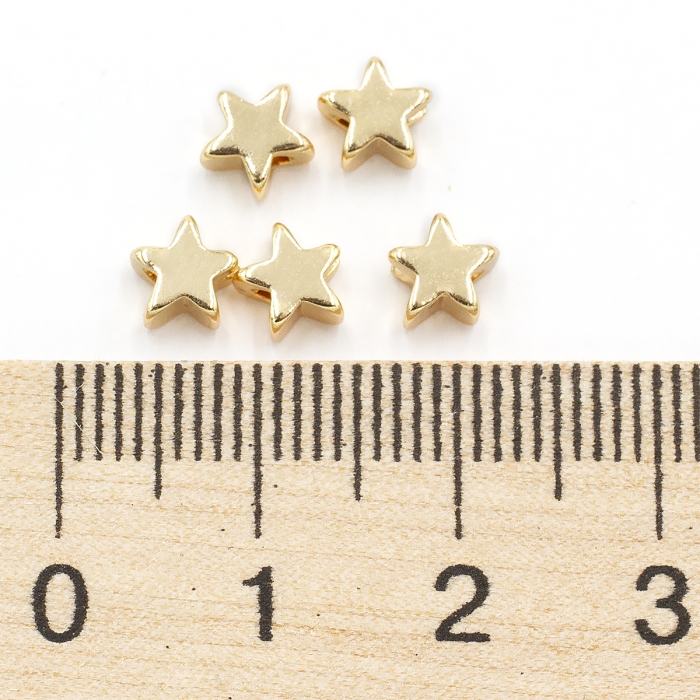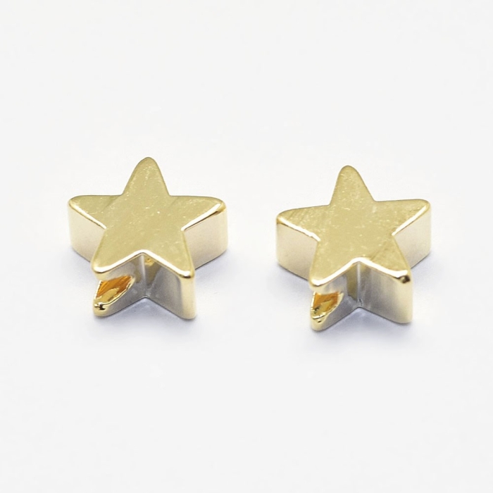 Koraliki Mosiądz, Gwiazda, Powłoka Odporna, Pozłacane 18k złotem, grubość 0,01-0,03mcm (750 próba) bez Niklu.