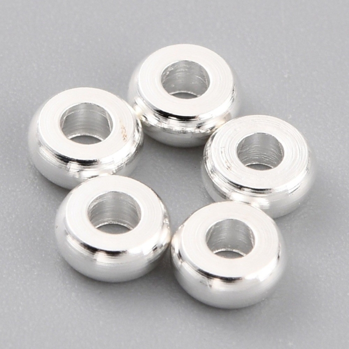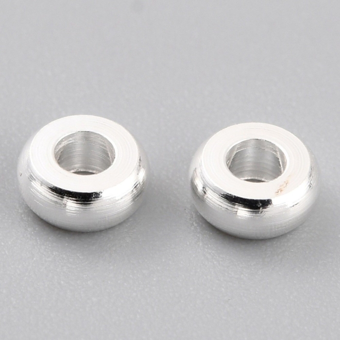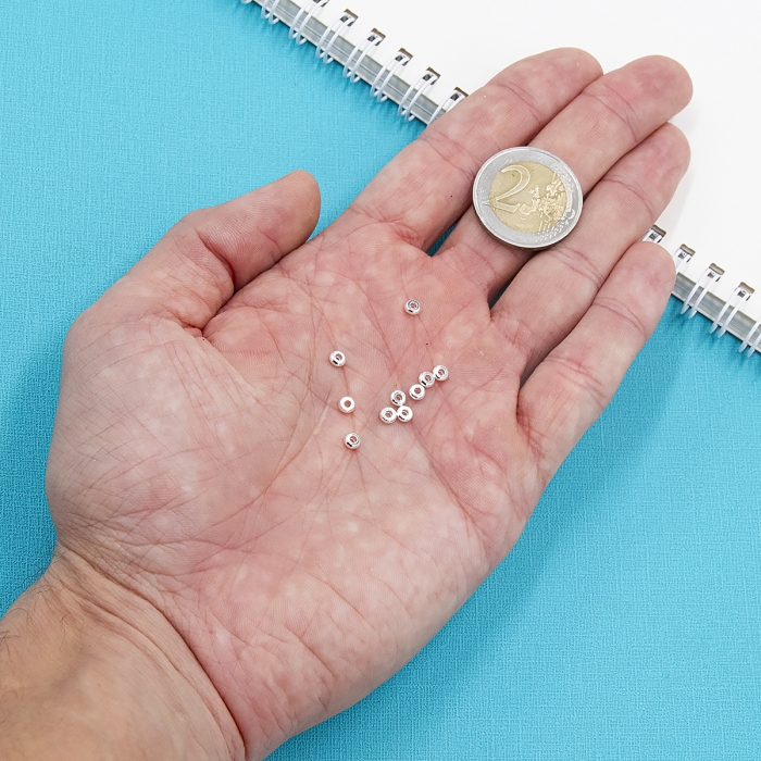 Koraliki Mosiądz, Okrągłe, Płaskie, Powłoka Odporna, Srebro 925 próba Rozmiar: Średnica 4mm, Grubość 1,5mm, Otwór 1,5mm 10szt / opakowanie Mosiężne koraliki są popularnym materiałem w produkcji biżuterii. Mogą być używane do tworzenia naszyjników i bransoletek, a także kolczyków. Koraliki te mogą stać się częścią broszek lub wisiorków, dodając dodatkowego blasku i atrakcyjności. Mosiężne koraliki są często łączone z innymi materiałami, takimi jak szkło lub akryl, co nadaje biżuterii różnorodności i oryginalności.