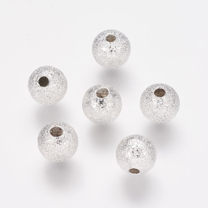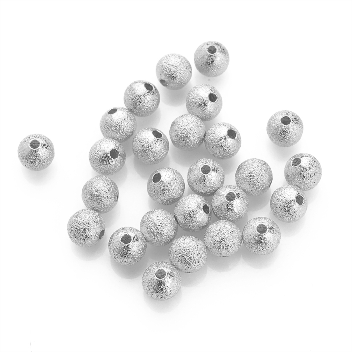 Koraliki Teksturowany, Gwiezdny Pył, Mosiądz, Okrągłe, 6mm, Otwór 1mm, Kolor: Srebrny, 25szt (13WB28886)