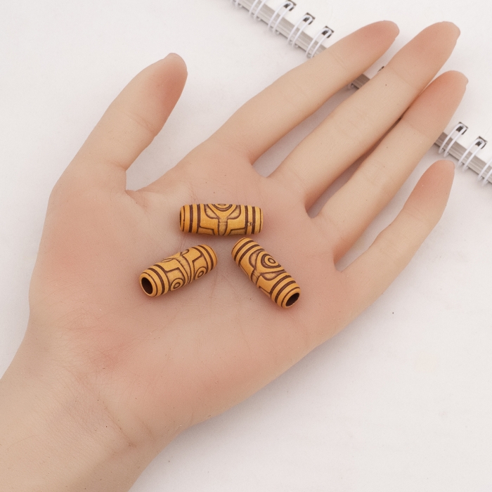 Акрилові намистини під дерево у формі циліндра використовуються для створення біжутерії в етнічному та природному стилях, включаючи браслети, намиста та сережки. Вони також ідеально підходять для декорування аксесуарів, таких як сумки, ремені та елементи одягу, додаючи виробам природний та теплий вигляд. Намистини часто застосовуються в декоративних проектах та рукоділлі, де потрібно створити ефект натурального дерева, але з перевагами акрилового матеріалу.