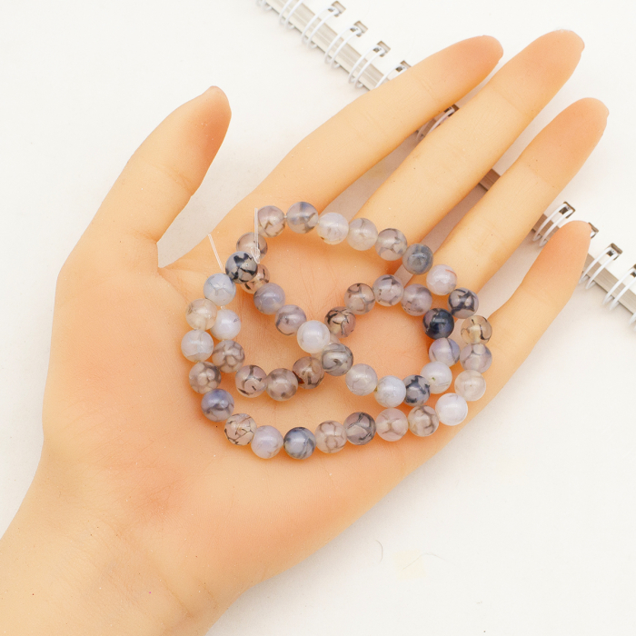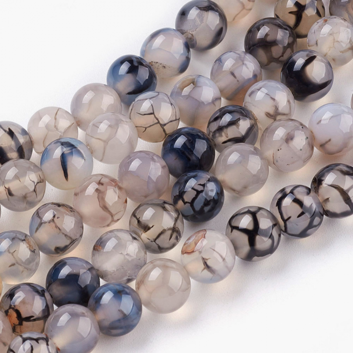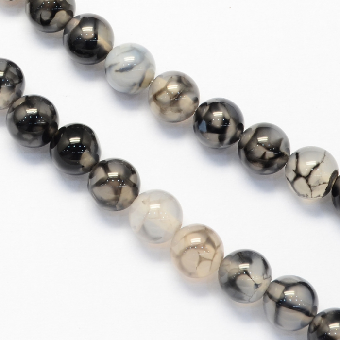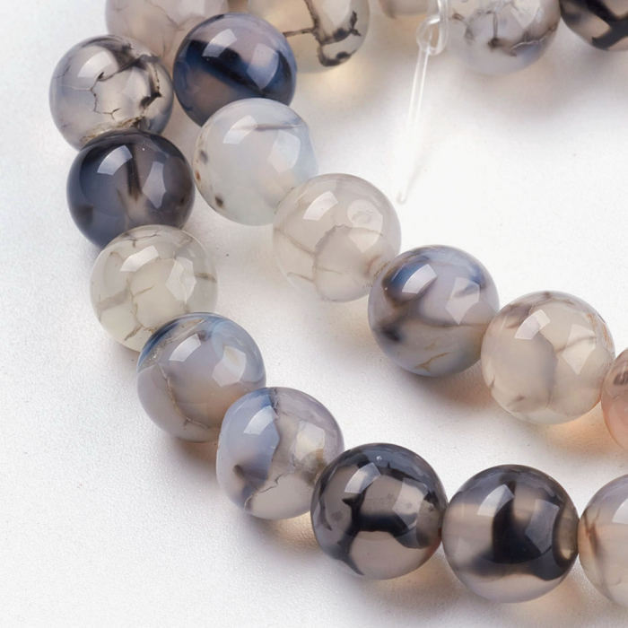 Намистини з Натурального Агату Вени Дракона Пофарбовані, Круглі, на Нитках Країна походження каменю: Бразилія Колір: Сірий